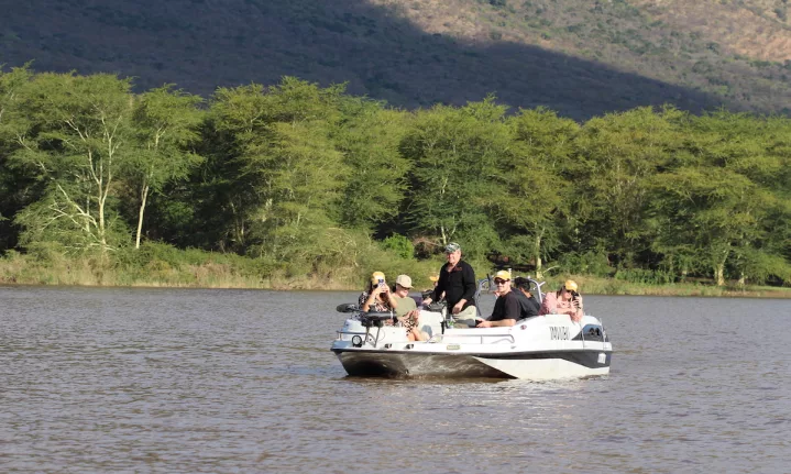 Royal Jozini Private Game Reserve is a special place. You have this luxury of full immersion; bush, lake, mountain. It feels, as you cruise along the lake, that you are floating through a safari snowglobe, the immense mountains marking the perimeter. The glass of the globe, if you will.