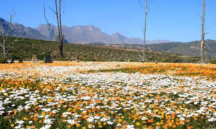 Above Vanrhynsdorp, the Gifberg plateau hides a world of red rock cliffs, waterfalls and San rock art, best reached via a steep and scenic drive or on foot. While much of the area is privately owned — including parts accessible through Gifberg Holiday Farm — visitors can explore designated trails and natural pools with permission. Though not formally managed by CapeNature, the region holds immense ecological and cultural value, making it a rewarding destination for those seeking solitude and connection with the landscape. Springtime brings bursts of wildflowers, while the cooler seasons offer crisp air and quiet paths into the heart of this craggy wilderness.