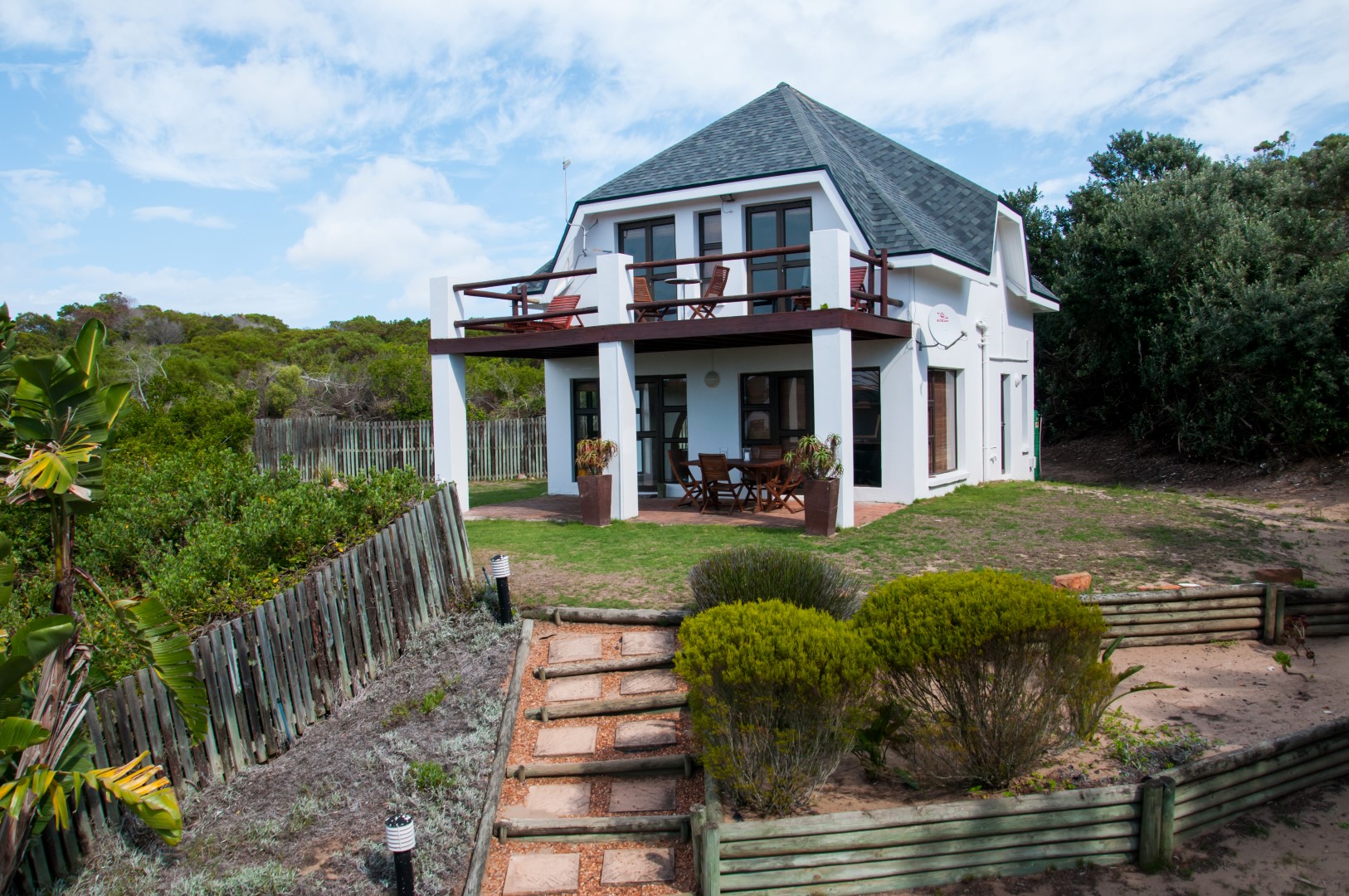7. St Francis E’s-cape offers a contemporary, double-storey house with stunning village views. The private enclosed garden is safe for pets, making it ideal for furry companions. The house features a large family-size bedroom, flat-screen TV, and free Wi-Fi. With a maximum capacity of 2-3 adults and 2 small children, guests enjoy a spacious en-suite bathroom and a deck for sunset viewing.