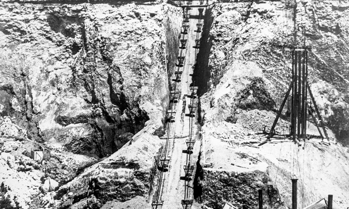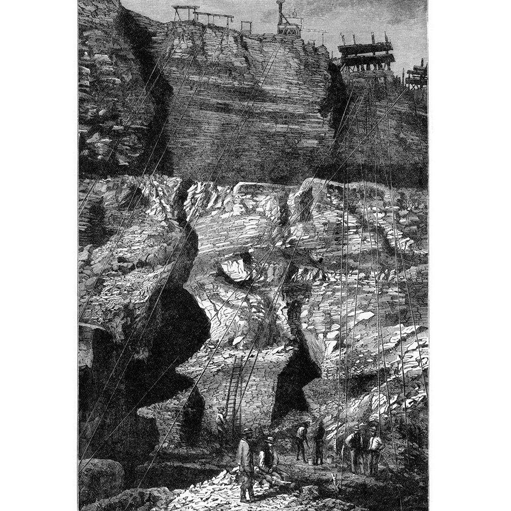 Headgear was first constructed at the Kimberley mine in 1890, allowing miners to haul kimberlite rocks from beneath the surface.