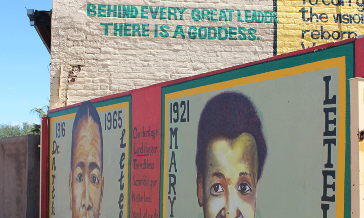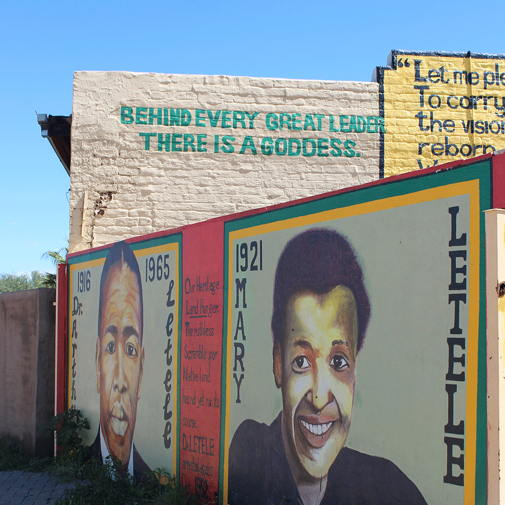 A mural at Robert Sobukwe’s old law office in Galeshewe celebrates struggle hero Dr Arthur Letele and his “goddess”, Mary.