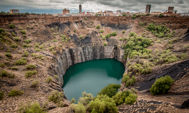 Today, the Big Hole is the city’s main attraction and unofficial emblem. Locals seem to love it and loathe it in almost equal measure. They love that the colour of the water alternates between blue and green with the changing seasons. They’re not so fond of the fact that the busy Bultfontein Road, skirting the eastern edge of the hole, has been closed for more than a decade for fear the thundering trucks might cause a cave-in.