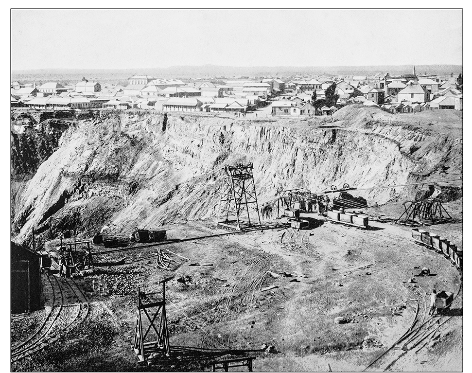 Fortune seekers had flocked to South Africa from around the world following the discovery of the Eureka diamond in Hopetown in 1866. But many found that Hopetown delivered nothing more than hope and they soon moved their shovels and picks to Colesberg Kopje, found on a farm 125km northeast. The owners of that farm were the De Beers brothers, whose name would forever be associated with diamonds. The kopje did not enjoy a similar longevity. ‘Gradually the round hill was whittled away until it was level with the earth,’ writes James Leasor in his book Rhodes & Barnato: The Premier and the Prancer. ‘Digging continued until what had been a hill became an ever deepening hole.’
