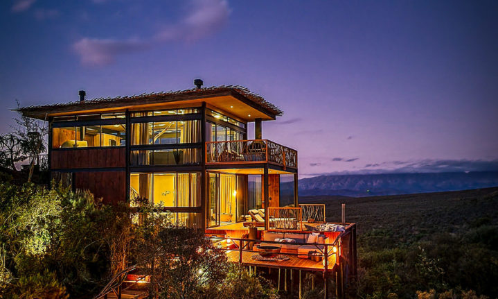 This romantic treehouse getaway is set in the Melozhori Game Reserve two hours outside of Cape Town. Enjoy a delicious morning cup of coffee from the available bean-to-cup coffee machine, cook pizzas in the built-in pizza oven, or just stargaze from the comfort of the wood-fired hot tub.