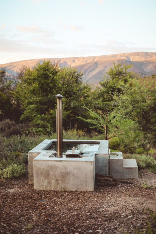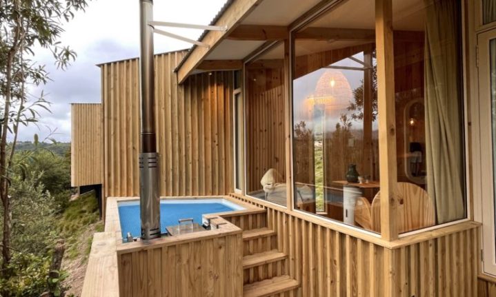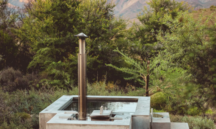 Located near the town of Wellington, this hot tub getaway in the Western Cape sits beneath the Groenberg Mountain Range. There’s a river walk, a vineyard hike, and wine-tasting rooms to make your getaway memorable. Purchase a bottle or two of their wines in your private jacuzzi.