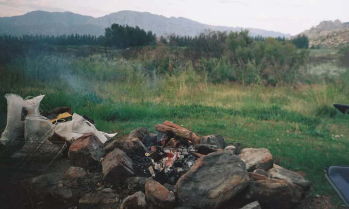 It was the perfect set up; our fire pit stationed on the edge of grass, before the terrain turns to brush. The hammock stretched with ratchet straps between two tall trees, and our little two-person tent. All set against the backdrop of the brilliant Olifants mountains.