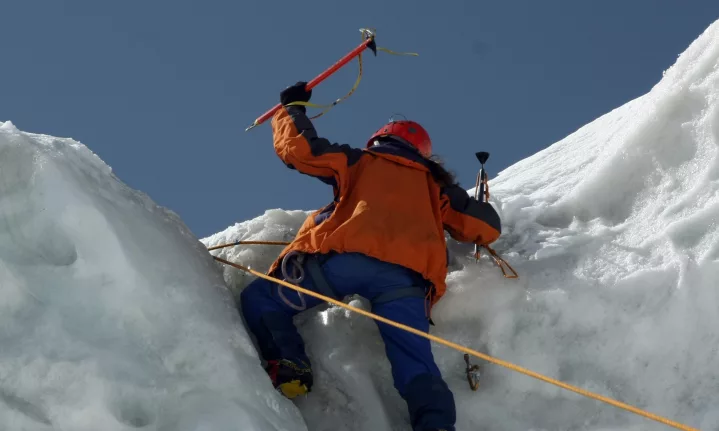 Getting to the ice formations is a bit challenging, with a 9-hour hike up a major mountain pass. Climbers must also hike with their backpacks, camping and cooking equipment, and climbing gear.