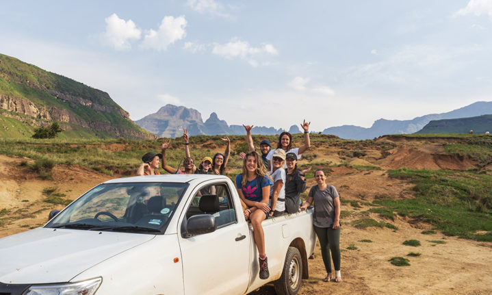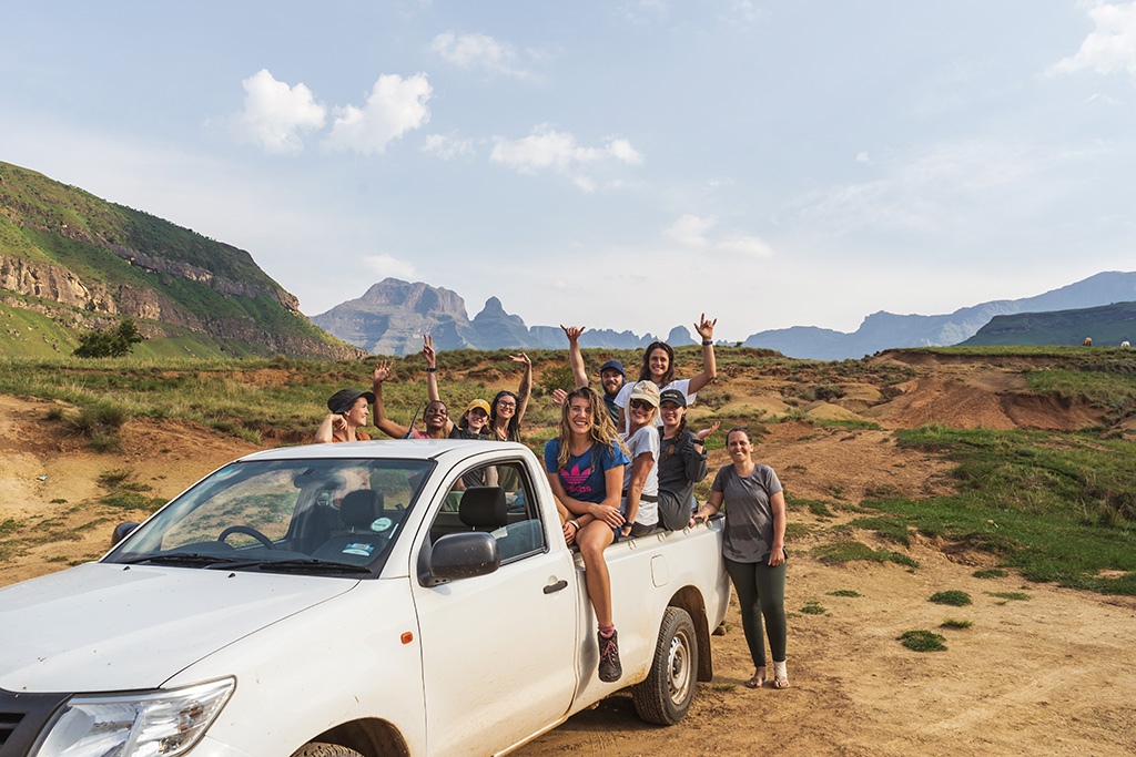Our full ‘Womxn for Wild’ crew at the end of the Mnweni Circuit, hitching a ride back to the Cultural and Hiking Centre.