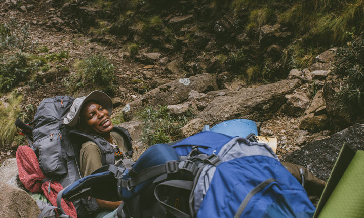 The Mnweni Circuit is not an easy trail. There were tears. There were welts. There was sunburn and burst water bladders. But I couldn’t have braved it with a better crew – who captured the pertinent moments. Dineo filmed herself weeping while walking down Rockeries Pass on day three, Carmen posted snaps of blisters nursed by cold beers, while I tried to share the realities of facing a hail storm while smooshed into the tiny sky-blue tent with all our gear.