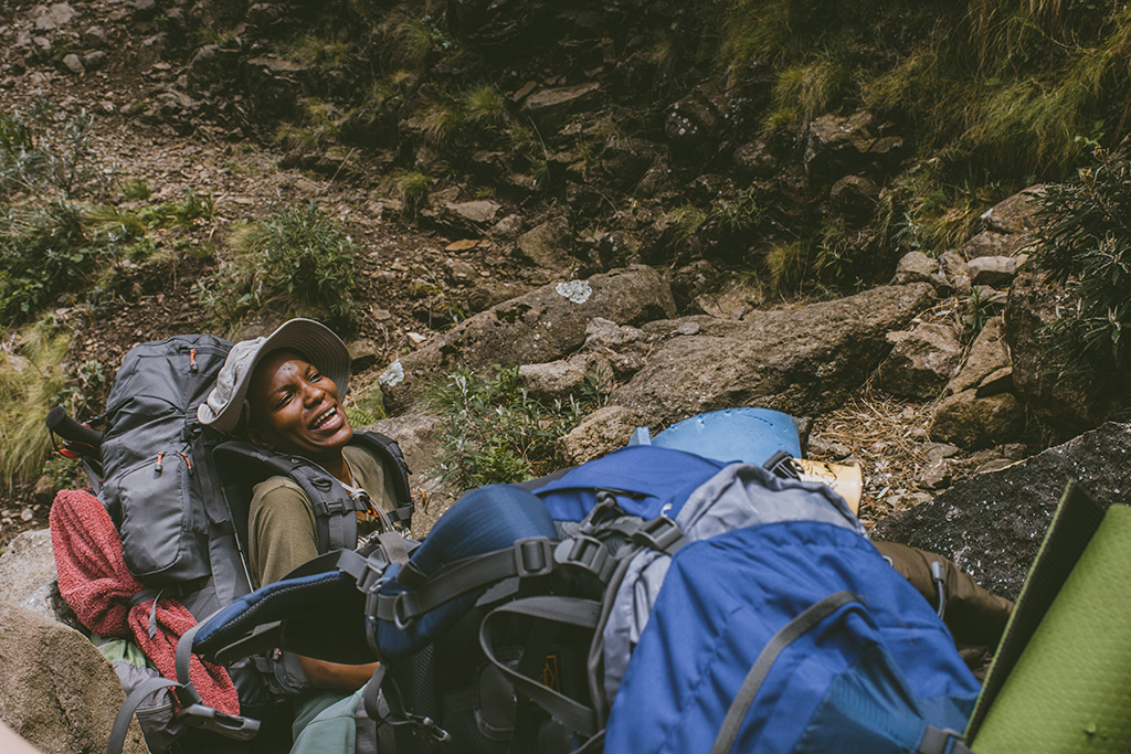 ‘Being around nature brings me a lot of joy. It makes me feel free and more alive. Camping at Ledges Cave was a unique and unexpected experience, something I’ll remember forever. I tackled this trail because I needed the challenge. I wanted to meet new people and witness the Drakensberg’s breathtaking views. Although I knew the hike would be challenging, I did not expect it to be that tough. It was a lot like life: we all move through it differently and face many challenges but you keep going, appreciate the beauty and make the most of the experience. No one was coming to save me. I had to trust myself and keep going, no matter how tough it was.’