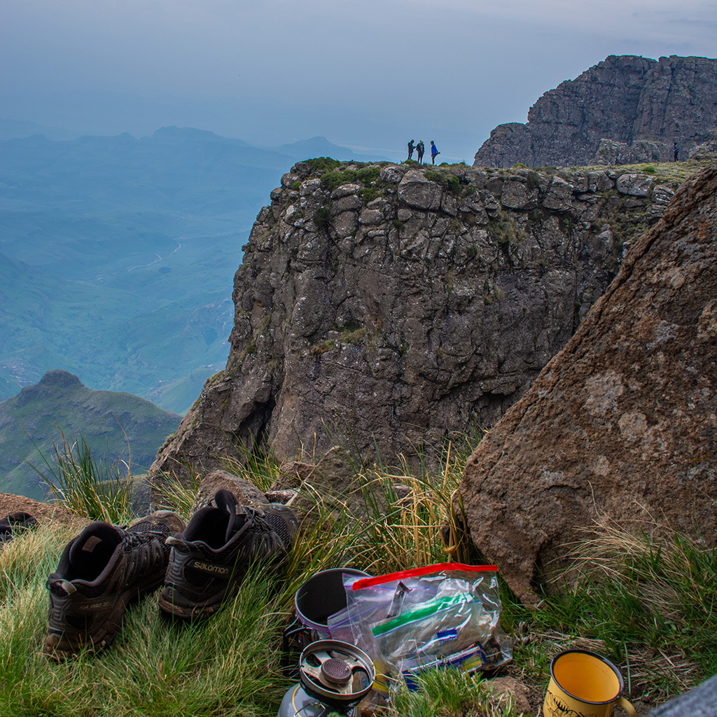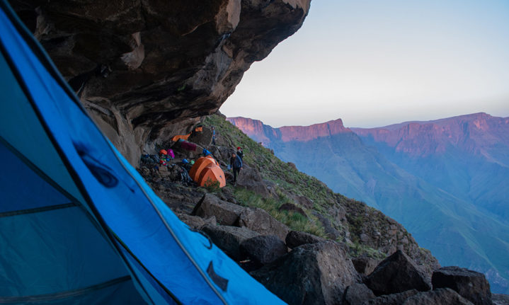 I’d just woken up to day three of the Mnweni Circuit, a hike in the northern Drakensberg, that I was doing with 12 others. Someone bolder had already left the safety of Ledges Cave (and their snug sleeping bag) to better soak up the dawn’s pastel palette.
