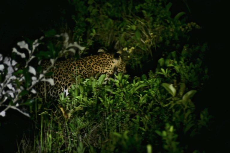 Leopard spotted at night on game drive. Credit: Bernard DuPont/Flickr Commons