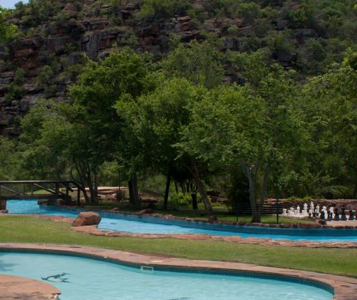 Additionally, two-bedroom self-catering houses are available. The units are scattered among the indigenous trees, surrounded by the sounds of wildlife.
