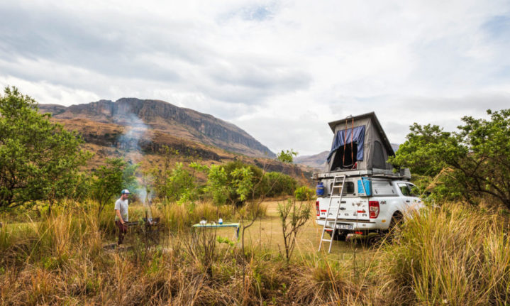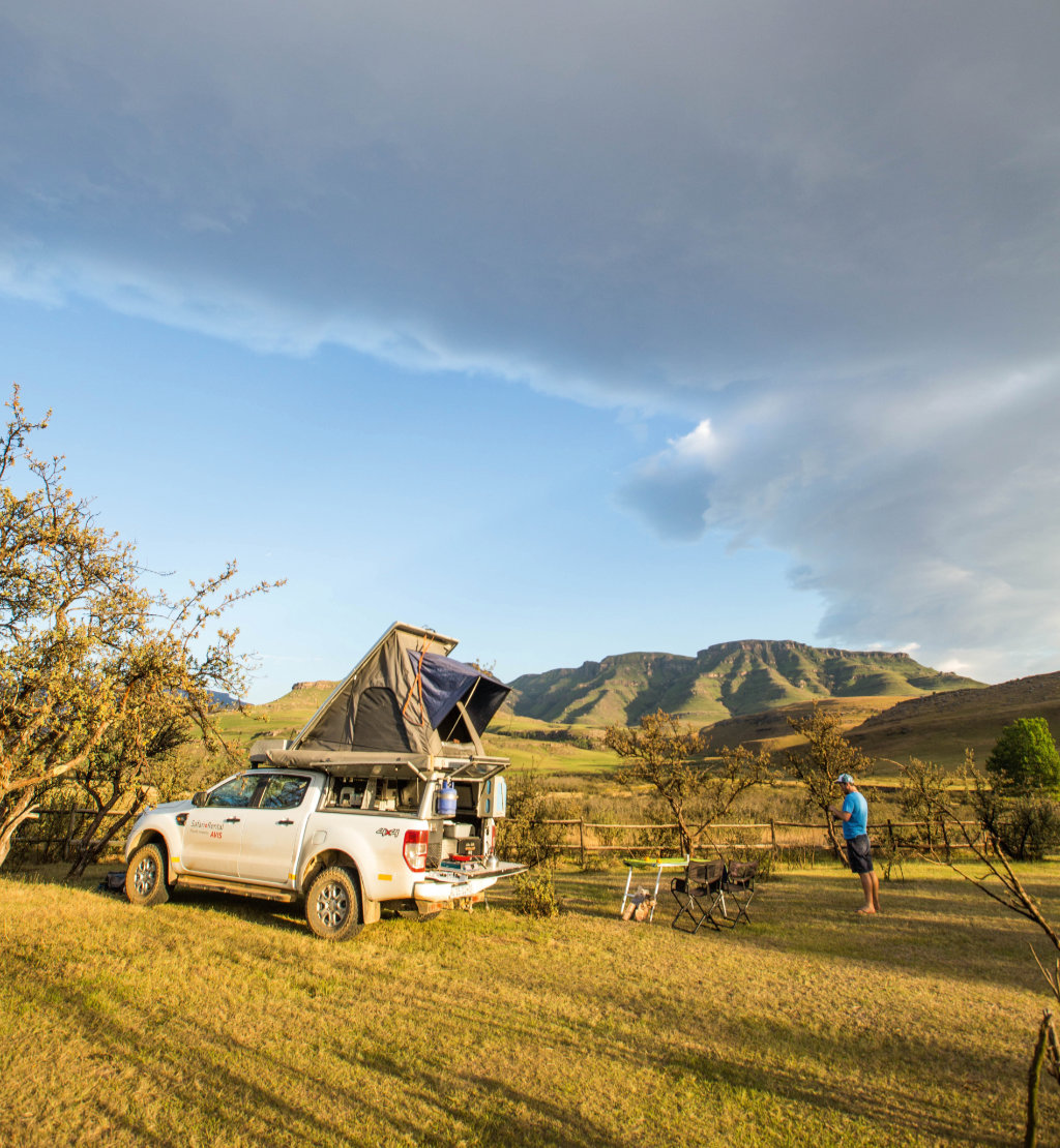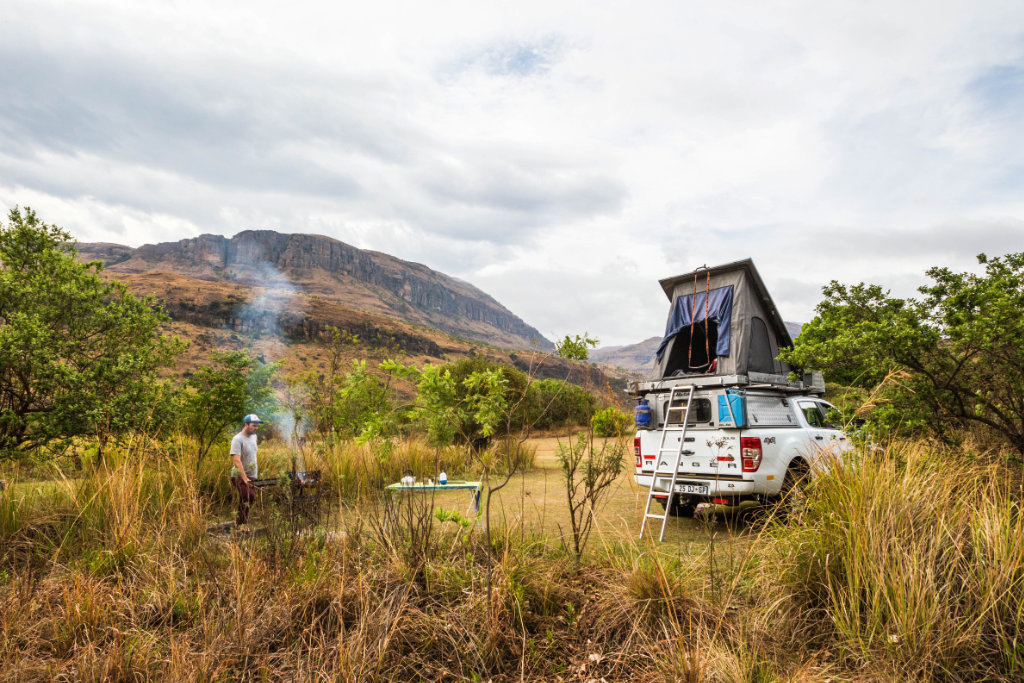 I used a fully kitted Ford Ranger safari vehicle from Avis for my trip. The car itself handled all the roads incredibly well and was a joy to drive, but the real pleasure came from the camping setup. The rooftop popped up with a flick of a handle and could close (with the bedding inside) just as easily – so packing up took a matter of minutes. The vehicle comes with a 270˚ shade awning, a 90-litre twin fridge and freezer, and a comprehensive kitchen. A helpful little feature is the tap (connected to an 80-litre water tank) on the side of the vehicle for quick access. The 165-litre fuel tank and solar-panelled electric system will come in handy, especially on big bush trips into Southern Africa. From R1 235 per day. avis.co.za