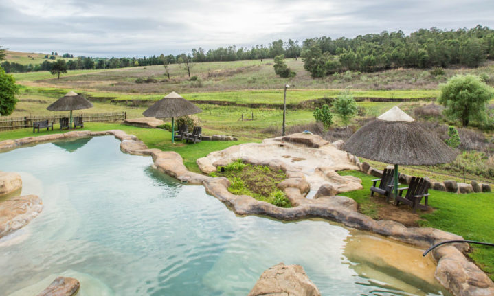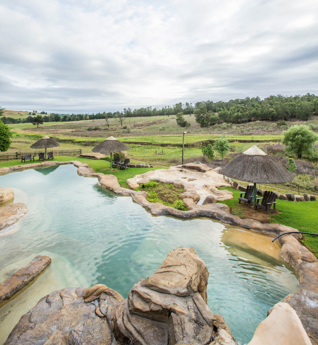 Mountain Splendour was built by Iain’s father in 1980 on a hilltop plateau on their potato farm in Champagne Valley. The site now has a playground with a giant chessboard, a beautiful pool with a slide, and tennis and volleyball courts. There are also plenty of organised activities and open space for games – more than enough to keep kids busy. Goats, sheep and pot-bellied pigs trot around the campsites, while horses, donkeys and cows are kept in an adjoining paddock.