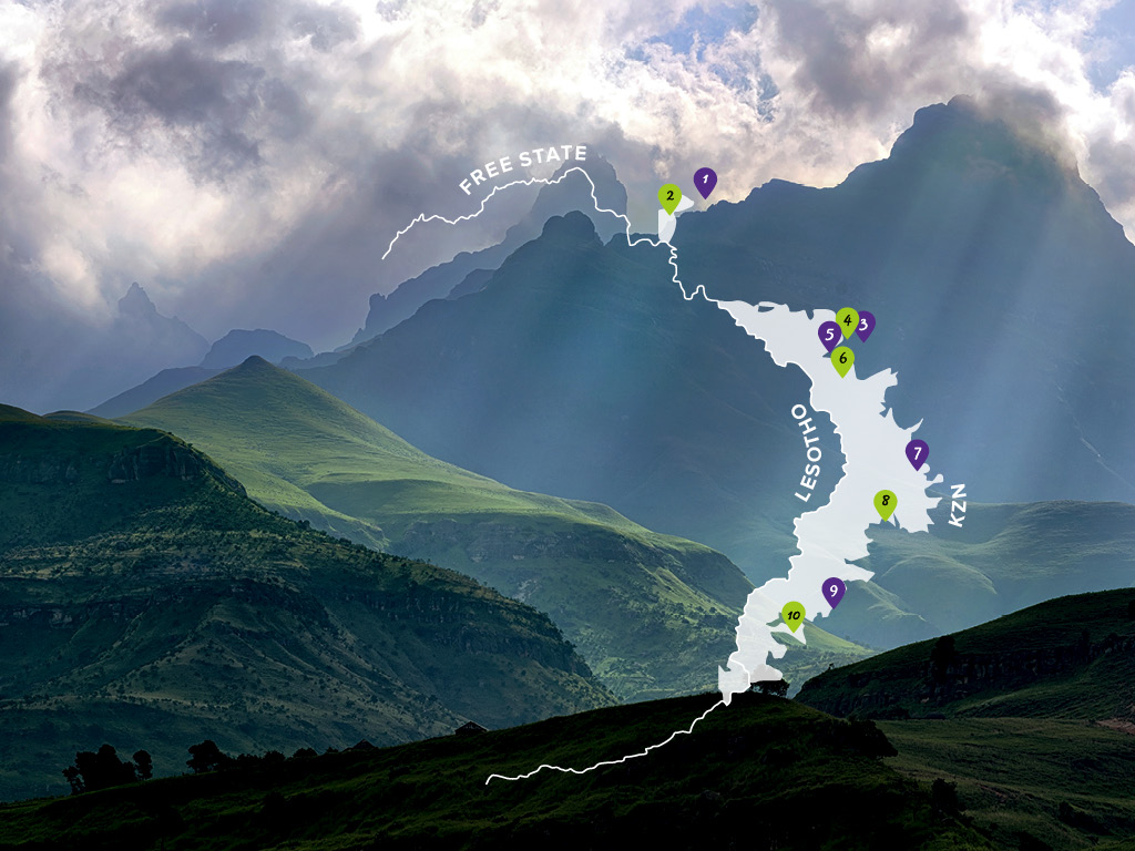 We’re spoilt for choice when it comes to campsites in the Drakensberg. There are 24 across its main section, from Bushman’s Nek in the south to the Amphitheatre in the north. As the crow flies, it’s about 160 kilometres of ‘clear mountain streams and age-old forests, of frothing cascades tumbling into pools of laughing water, of green mountain slopes and secret kloofs, of wild flowers and singing birds’, as venerable Drakensberg scribe, Reg Pearse, put it.