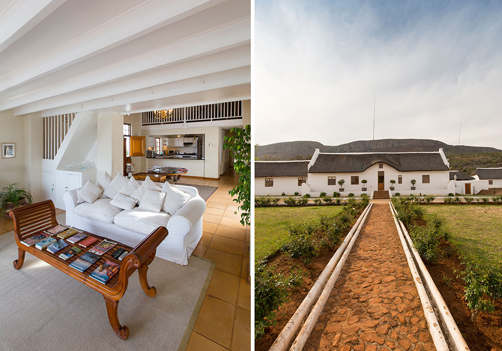 Apparently based on the design of an early Transvaal farmstead, but Cape Dutch in character, Valley Lodge comprises a quadrangle of six self-catering buildings built around a large central courtyard. Every unit has Peter Curle’s trademark decor – white furnishings, Cape antiques – but it’s quite a different experience to neighbouring Steynshoop Mountain Lodge (above): aside from being self-catering, it’s fenced, so doesn’t provide the same connection to nature. Additional facilities include an all-weather, flood-lit tennis court, volleyball, badminton and croquet, a billiard room and a shared outdoor entertainment area with a small fenced pool, braai area and three thatched gazebos. Taken as a whole the lodge can sleep 20 comfortably, plus has three sleeper couches for kids. A pretty chapel is being built.