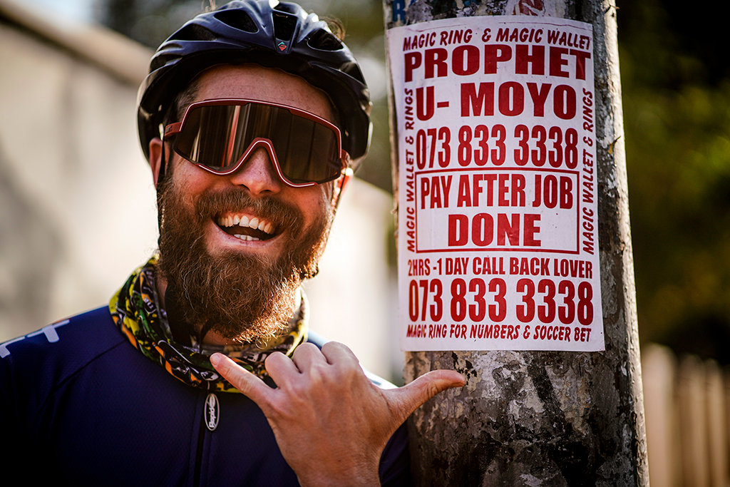 Zane Schmahl admires a typical Jozi street sign offering any number of dodgy services.