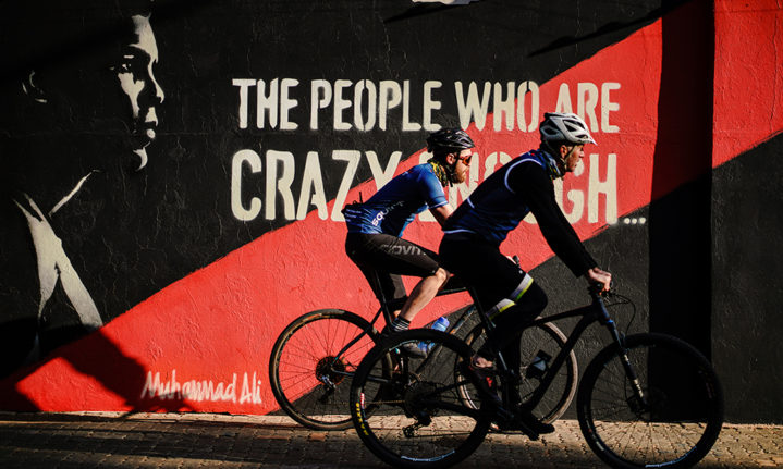 And what a buzz it was to crank into the resounding roar of rush hour traffic in Johannesburg. We felt like a pedal-powered urban assault force as we sniped in and out of alleyways, along mall thoroughfares and via tree-lined suburban streets, all the while scouting for the vivid and larger-than-life “walls”.