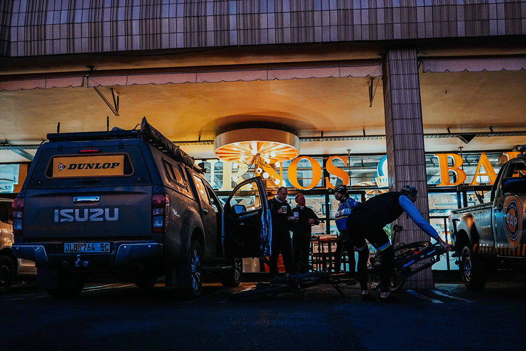 The plan was to meet before dawn at Fournos Bakery in Dunkeld (mainly because no one in their right mind would set off on a dark-zone ride without a solid caffeine hit). Also, this is where Eelco – a Peter Pan-ish septuagenarian masquerading as an amiable, high-spirited teenager – starts off his regular street art outrides.