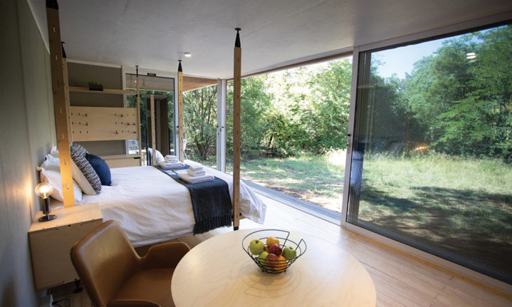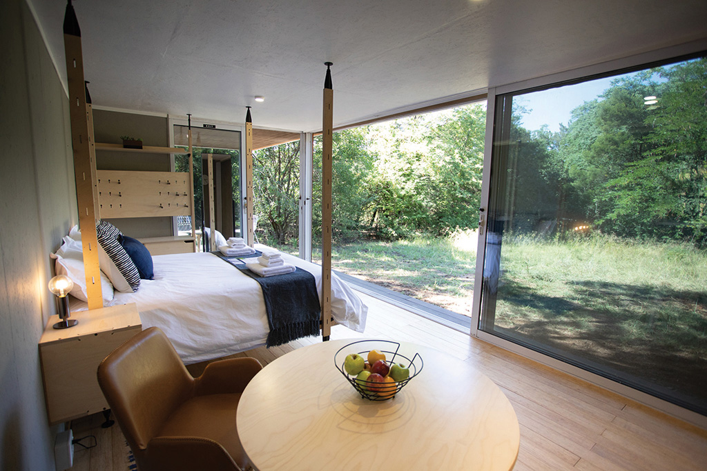 Set on a working farm in Pretoria, this new eco-friendly stay lets the outdoors in with floor-to-ceiling glass panels and a lekker porch to relax on