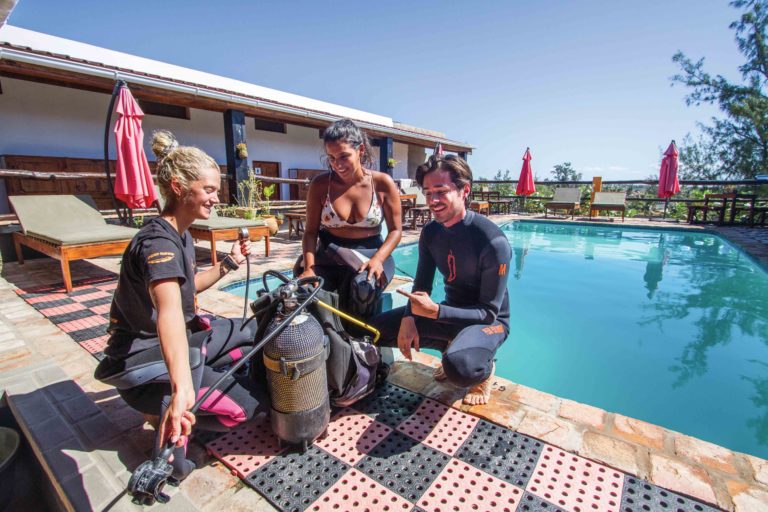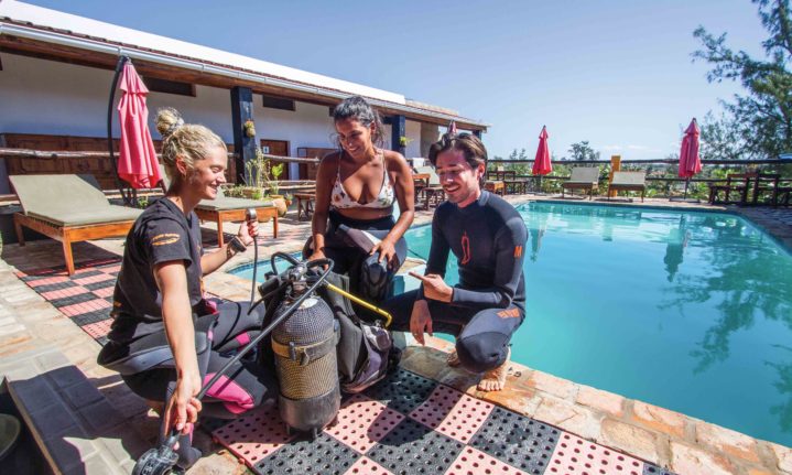 Peri-Peri Divers in Tofo makes learning scuba diving easy in the five-metre-deep pool on site. Image: Catherine Hofmeyr.