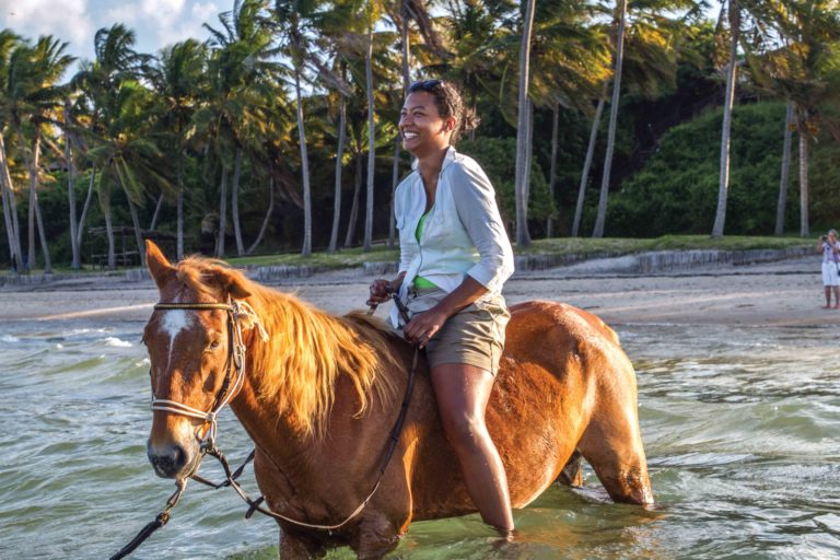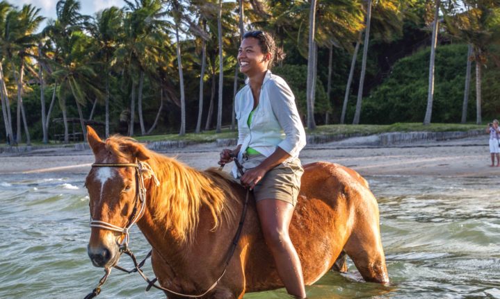 It was Gabby Jacobs’s first time on a horse with Mozambique Horse Safaris at Archipelago Resort near Vilanculos; they also ride on Benguerra Island. Image: Elizabeth Broomhall.
