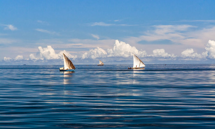Dhows glide across the warm Indian Ocean off the coast of Nosy Be. Image: Getty.