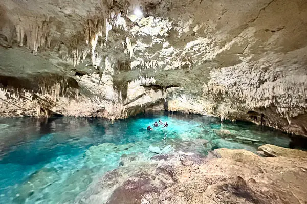 Highlight: Swimming alone beneath ancient stalactites in crystal-clear stillness.