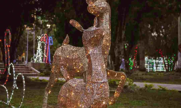 Cusco, the ancient capital of the Inca Empire, celebrates Christmas with a vibrant display of lights in Plaza de Armas. The main square is adorned with colorful lights, creating a festive atmosphere against the backdrop of historic buildings and the famous Cathedral. The city also hosts traditional processions and cultural events during the holiday season.