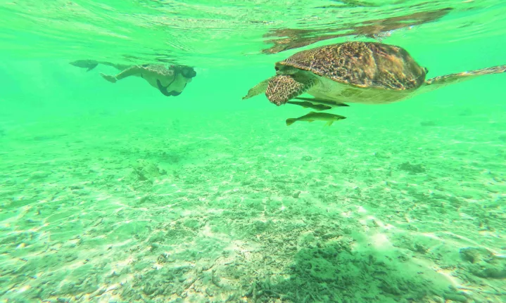The green turtle in whose slipstream I was swimming was well over a metre long. A big one. I’d been working hard for this moment, encouraged to dive deep by my Bangladeshi snorkelling guide. When he beckoned me to come “quick quick”, I surfaced for breath and swam as strongly as I could muster. Suddenly I saw it: a surreal vision in this reef of a thousand sights aptly called Coral Garden. Among emperor angelfish, harlequin sweetlip, coral hind, nemo fish and others I couldn’t identify, a colossal creature came into sight.