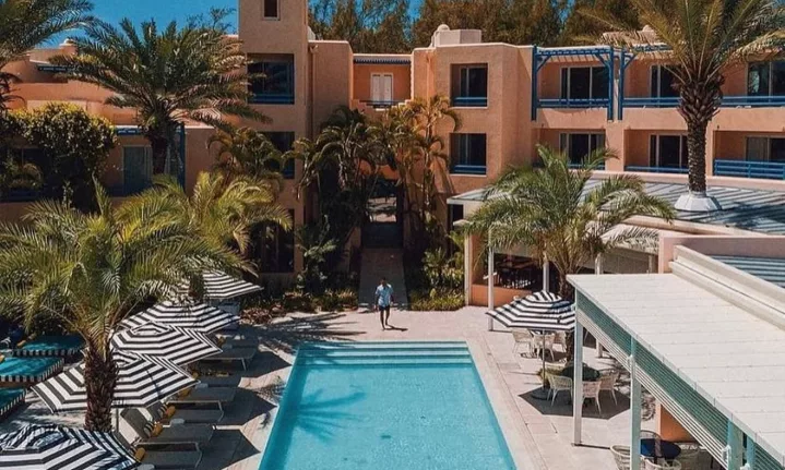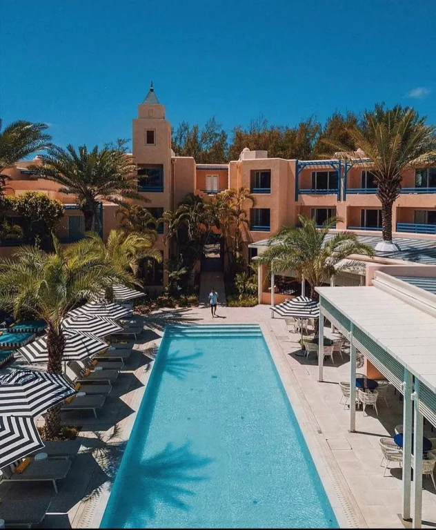 Progressive, unorthodox, experiential and aesthetically accentuating the island’s enduring state of tropical bliss, Salt is a 59-room hotel that opened in 2018 with a mix of bold colour and elegant minimalism that works incredibly well in a hot and frequently humid environment. The vibrant design is the result of a collaboration between French artist Camille Walala, known for her vivid murals, and Mauritian architect Jean- François Adam, who repurposed an existing riad-like building on the edge of Palmar’s white sand beach and transformed it into something that looks and feels like a true original.