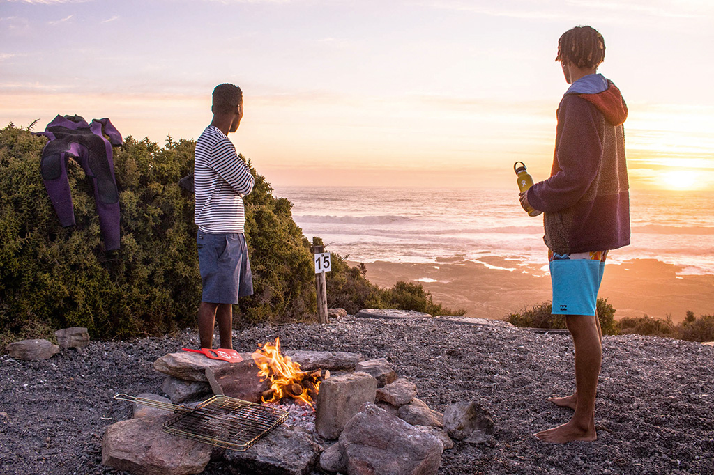 Ah, the elusive Camp 15, I presume, where it’s beer and braai time for SA surfing stars Simo Mkhize and Joshe Faulkner. (Photo Ian Thurtell)