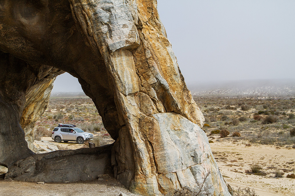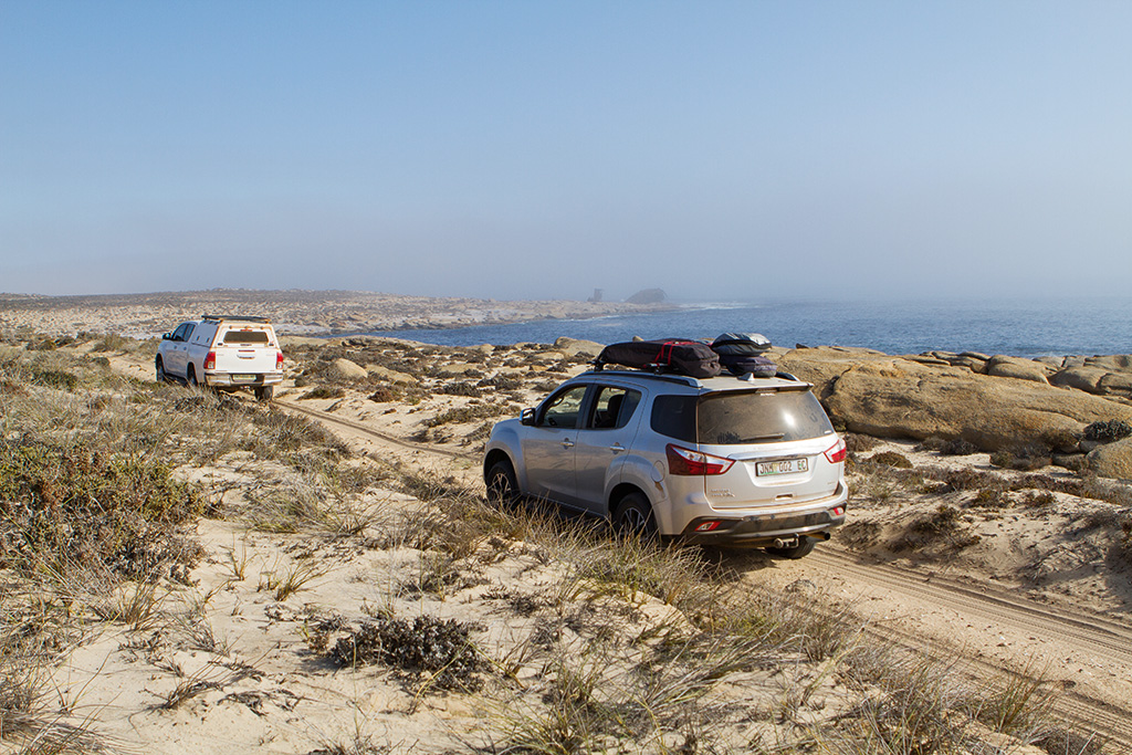 ‘Right, here comes your first sand test. Deflate tyres to 1.2 bar and turn off the traction control,’ instructed renowned Namaqualand guide and 4×4 expert, Dudley Wessels. We were at Samson’s Bak at the start of the trail. And, other than the drought-blackened vaal vygies (grey mesemb) of this succulent Karoo biome, we couldn’t see five metres in the fog. It’s the sudden arrival of this all-blanketing sea mist that’s partly responsible for the rusting hulks of ships dotting this strip of wave-battered coastline.