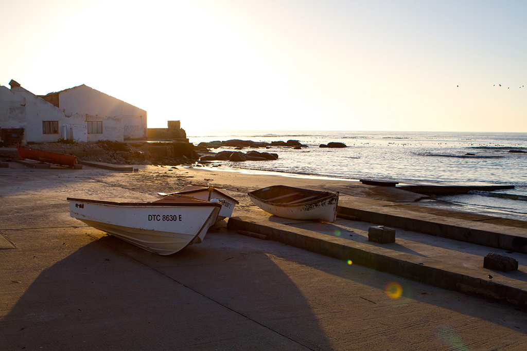 Hondeklipbaai is a quirky weskus village with great fish and chips; soft evening light belies the vandalism that has destroyed the once-thriving fish factory.