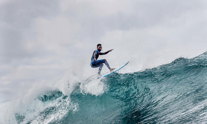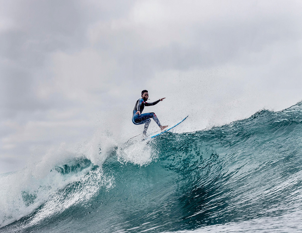 Simo Mkhize, from the balmy waters of KZN, looking right at home on an icy West Coast bomb during an Amandla Surf Foundation recce trip up the West Coast last year. Find out more about how Amandla is helping and training SA’s future surfing stars at amandlasurffoundation.com