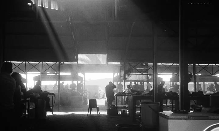 During a photo assignment for a commercial, Ivisited Single Quarters, the famous market in Windhoek, Namibia, known for selling herbs and other food. My main reason for visiting w a s to try their popular street dish. kapana, thin beet strips prepared with beef faat and unique Namibian