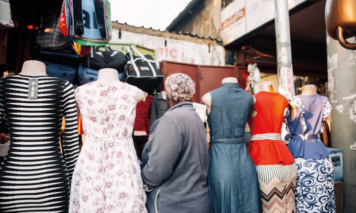 A bystander observes a TV commercial being shot early in the morning in bustling Marabastad. – Marabastad,Pretoria,2018
