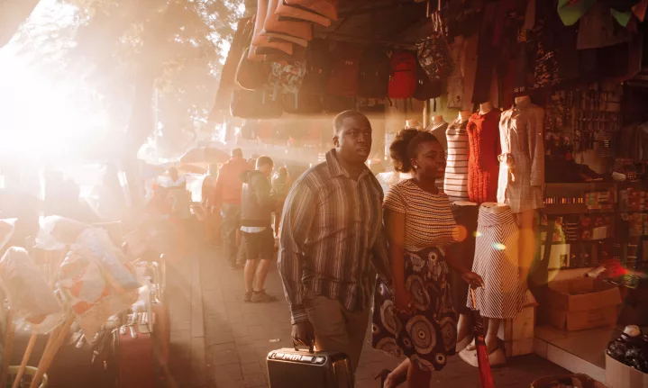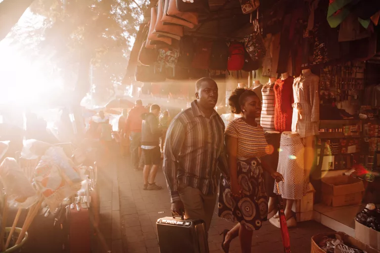 Behind the scenes: extras pose as directed on a set built in Marabastad, Pretoria, to resemble East Africa for