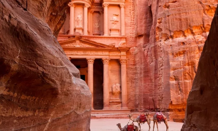 Reaching Petra’s famed Treasury means hiking through a narrow slot canyon known as the Siq. This UNESCO World Heritage Site blends natural wonder with ancient craftsmanship, as Nabatean tombs are carved directly into rose-hued cliffs.