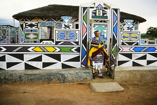 In South Africa’s Mpumalanga province and parts of southern Zimbabwe, artistry is built into the walls themselves. Ndebele women continue a centuries-old tradition of painting their homes with striking geometric patterns, each design conveying messages of identity, family, and pride.