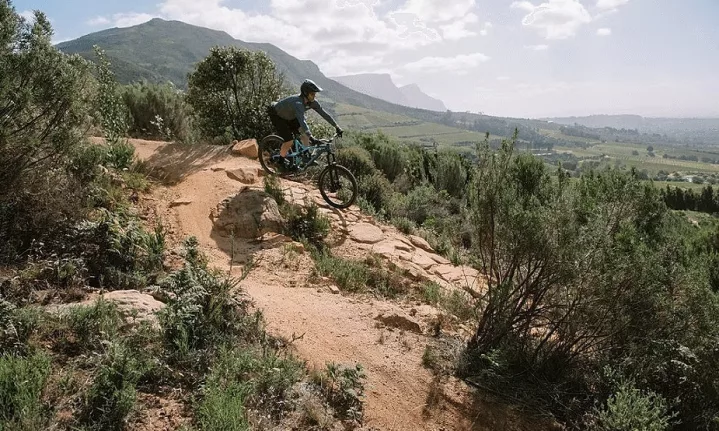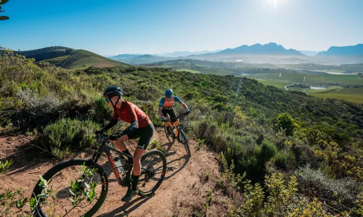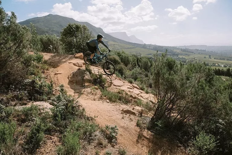 Flowing through fynbos and vineyards, these trails are perfect for riders wanting a scenic outing with gentle terrain. The shorter green and blue routes avoid the steeper ridgelines and are ideal for beginners or casual riders. Along the way, you’ll spot farm dams, spring wildflowers and distant mountain views — not to mention a few wine estates perfect for post-ride tastings.