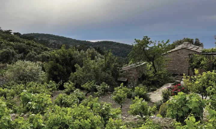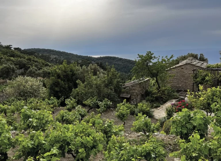 I don’t want to go. I want to hear more about the nun, once captured by pirates from Lesbos, sanctified and buried at the tiny local monastery. To drink more of the unadulterated Karimalis wine. To stare longer out the window of my little stone room, out over the vines to the sea.