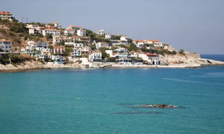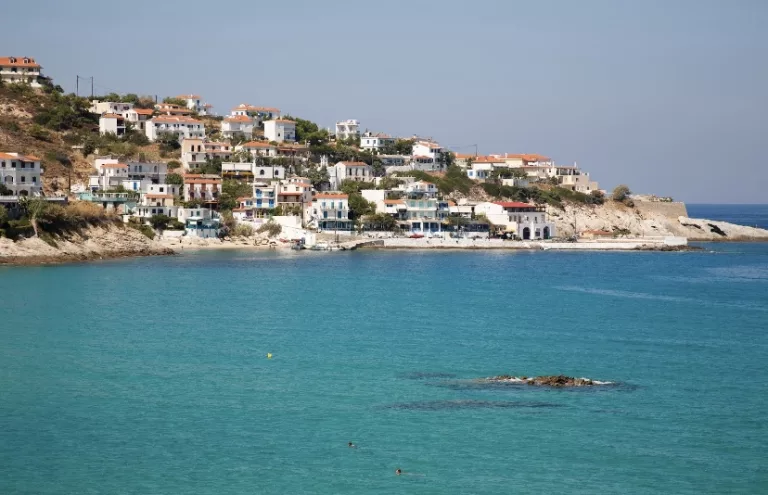 Soon we reach Therma, a small village with hot springs spilling into the sea, where hydrotherapy’s been practiced since the 4th century BC.