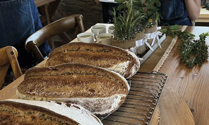 Finally finished, lunch is eaten with great relish; we’re proud of ourselves. We celebrate with an off-dry Rosé, honey-touched 2022 Akissare, from the vineyard.